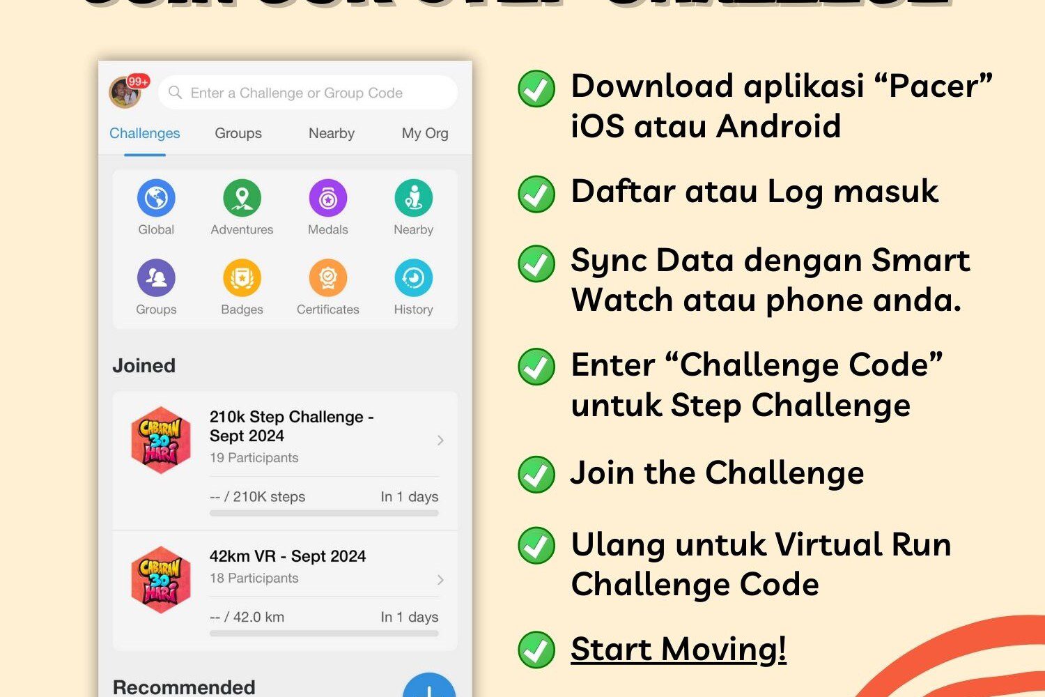 Pacer App: Cara sertai Step Challenge Cabaran 30 Hari